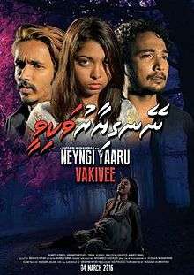 Neyngi Yaaru Vakivee is a 2016 Maldivian romantic film directed by Hussain Munawwar. Produced under the banner Kid Production, the film stars Aminath Rishfa and Ahmed Azmeel in pivotal roles. The film also stars Ahmed Nimal, Ismail Jumaih and Maleeha Waheedh in supporting roles. The film was shot at different locations from Sri Lanka.[1]