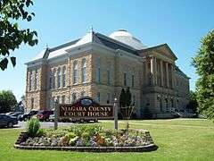 Niagara County Courthouse and County Clerk's Office is a historic courthouse and county clerk's building located at Lockport in Niagara County, New York. The two buildings are located along Hawley Street, north and south of Niagara Street. The county clerk's building is a one story, limestone office building constructed in 1856 in the Classical Revival style. The original section of the courthouse building was constructed in 1886 in the Second Empire style, with additions constructed in 1915-17 and 1955-58.[2]