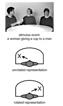 Signers who began learning after 1983 were not inconsistent in this way. Across multiple signers and multiple scenes, signers would apply the same rotated representation. Senghas and Coppola suggested that this meant that “spatial modulations are being used as a shared grammatical element among this age cohort”.[10]