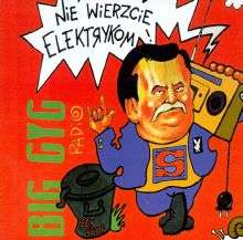Nie wierzcie elektrykom (Polish Don't trust the electricians) is the second studio album of the punk rock band Big Cyc, released in 1991. The title is a pun on "Don't trust the politicians" an it alludes to Lech Wałęsa's profession. The president of Poland was also depicted on the cover in a rather iconoclastic way, dressed in a jacket with a Playboy badge (as opposed to Virgin Mary badge, actually worn by Wałęsa). The album emulated a radio show, the songs being separated by nonsense dialogues of two "hosts", Skiba and Paweł "Konjo" Konnak.