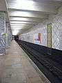1990, Podbelskogo Street station returned to the team of Aleshin, Samoilova[36] and Alekseev. The station was named after Vadim Podbelsky, a twentieth century statesman and party leader and featured a sculpted bust of Podbelsky created by Alekseev. A standard reinforced concrete project, the design had two rows of 26 columns faced with white marble. Affixed to the walls were striped metal panels and the floor was gray granite with narrow strips of red and black detailing.[37] In 2014, the station was renamed to the Bulvar Rokossovskogo station, as the street on which its primary entrance was located had been renamed in 1994.[38]