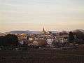 From the 14th century onwards, the center of the village spread to the west of the original center (quartier de la Villette) around a new square – the Place du Griffe. In this square, in the center of a fountain, there is a statue of Marianne which is more mythological than republican. She is the Greek-Roman goddess Artemis-Diana or Belissena, her counterpart in Celt Iberian cosmos of divinities.[6] She isn't wearing phrygian cap, but a star on her forehead, suggesting the guiding light to lead people from the darkness of ignorance.