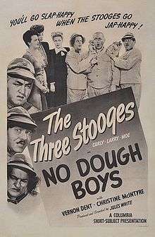 No Dough Boys is the 82nd short film released by Columbia Pictures in 1944 starring American slapstick comedy team The Three Stooges (Moe Howard, Larry Fine and Curly Howard). The comedians released 190 short films for the studio between 1934 and 1959.
