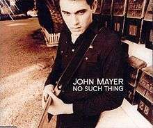 "No Such Thing" is the debut single of John Mayer. It was released in April 2002 as the lead single from his first album Room for Squares. Like many of the songs from Mayer's early musical career, the song was co-written with Clay Cook. The song has been used in episode 15 of the first season of Alias. It was Mayer's breakthrough hit, peaking at number 13 on the Billboard Hot 100, and becoming his highest charting song until "Say" hit #12 in 2007.