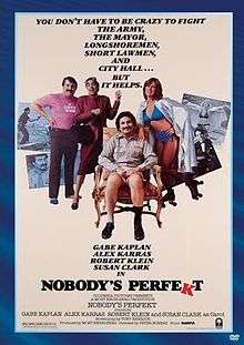 Nobody's Perfekt [sic] is a 1981 comedy film, adapted from Tony Kenrick's novel Two for the Price of One; Kenrick wrote the screenplay for this film.