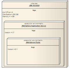 - An execution environment represents software containers (such as operating systems, JVM, servlet/EJB containers, application servers, portal servers etc.) This is a node that offers an execution environment for specific types of components that are deployed on it in the form of deployable artifacts.[1]