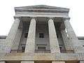 The North Carolina State Capitol is the former seat of the legislature of the U.S. state of North Carolina. Currently housing the offices of the Governor of North Carolina, it is located in the state capital of Raleigh on Union Square at One East Edenton Street. The cornerstone of the Greek Revival building was laid with Masonic honors by the Grand Master of North Carolina Masons Simmons Jones Baker on July 4, 1833.[3] Construction was completed in 1840.[4] It was designed primarily by the architectural firm of Ithiel Town and Alexander Jackson Davis. Often credited solely to that team, the design of the capitol was actually the result of a sequence of work by William Nichols, Sr. and his son William Nichols, Jr., Town and Davis, and then David Paton.[5] The Capitol housed the entire state government until 1888, and the North Carolina General Assembly met in the capitol building until 1961. The legislature relocated to its current location in the North Carolina State Legislative Building in 1963. The North Carolina Supreme Court has also convened in the building in the past, most recently meeting in the capitol's senate chamber in 2005 while the Supreme Court Building was undergoing renovations. The Governor and the governor's immediate staff has continued to occupy offices in the building.[6] The Capitol remains largely unaltered from its 1840 state. Only three rooms have been significantly altered through remodeling: the two committee rooms in the east and west wings of the second floor, which were divided horizontally to provide space for restrooms, and the office in the east wing of the first floor, part of which had to be cut away to permit space for an elevator to be installed in 1951.[7]