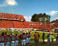 Brown's tenure was also known for the rise in popularity in the Tar Heel football program that, while not bad, was overshadowed by the Tar Heel's national powerhouse men's basketball program.[28] Games at Kenan Memorial Stadium were almost always sold out, highlighted by the 62,000 that showed to watch the Tar Heels' game against Florida State in 1997,[28] the largest crowd at a regular season college football game in the history of the state of North Carolina.[28] Brown also led an effort that resulted in upgrading UNC's football facilities and the expansion of Kenan Memorial Stadium.[28] Notable players who played for Brown at North Carolina include Jeff Saturday, Greg Ellis and Dré Bly.[5]