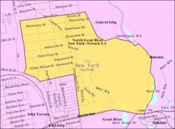 North Great River is a hamlet and census-designated place (CDP) in the Town of Islip, Suffolk County, New York, United States. The CDP population was 4,001 at the 2010 census.[1] The hamlet is served by the Islip Terrace Post Office (11752) and the East Islip School District.