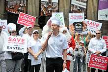 On Monday 21 December 2015, a public protest against the early sale of hot cross buns was held in Melbourne by bakers from across Australia and garnered significant media and public support.[3] Not cross buns were handed out to help deliver the message to the supermarkets and would remain on sale in participating bakeries until six weeks prior to Easter.