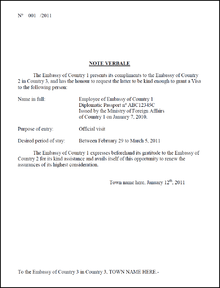 A typical note verbale will have the country's emblem on the top left and be signed at the bottom by a diplomat.
