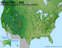 - ↑ "How Does AirNow Make the "Current PM2.5" Air Quality Index (AQI) maps?". AirNow. Retrieved 25 September 2014.