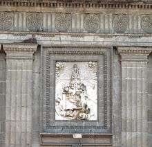 At the beginning of the 19th century, the Count of Bassoco decided to build a church dedicated to the Our Lady of Loreto, whose image was originally housed in the San Gregorio College. After the Jesuits were expelled from Spanish dominions, this image was moved from San Gregorio to the Convent of La Encarnación.[3] The site originally was a chapel used as a used as a baptistery for the Church of San Pedro y San Pablo in 1680.[4] Although Manuel Tolsá submitted designs for the church,[1] artists Ignacio Castera and Agustin Paz designed and directed the work and was built in three stages.[4] The first stone was laid in 1809, and the church was consecrated on 21 August 1816.[3] It would end up being the last church built during colonial times due to the Mexican War of Independence, which ended in 1821.[4] When it was finished, the image of Our Lady of Loreto was retrieved from La Encarnación and placed here.[3] It was placed in the hands of the Jesuits.[4] However, there was an error with design of this church. One side was built with solid, heavy stone, but the other was built with tezontle, a light, porous volcanic stone. This has caused the church to lean towards its east side.[1] By 1832, the church had sunk so that authorities feared its imminent collapse and ordered it closed, and the image of Our Lady of Loreto was moved to the San Pedro y San Pablo Church. After a few years, in 1850, it was decided that the church was safe enough to open again, and the image once again returned home.[3] Despite the tilting and some serious structural problems, the two sections have remained intact since the church was built.[1][4] On July 15, 1909, P. Wilfrido on behalf of the Congregation of the Sacred Hearts of Jesus and Mary, took possession of the Temple of our Lady of Loreto. At 6:00 a.m. the first mass was celebrated by Fr. Wilfrido.[5]