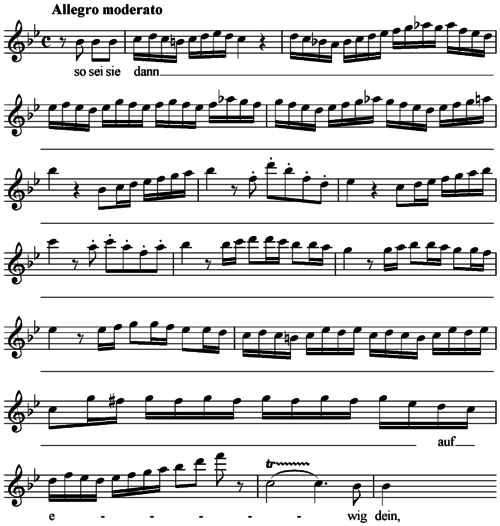 - Second part of the aria (back to B-flat major) – Allegro moderato