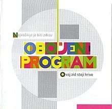Obojeni program (Colored Program) is the debut compilation album by the Serbian indie/alternative rock band Obojeni Program released by the Serbian independent record label Music YUser in 1993, and consists of the material from the first two studio albums, Najvažnije je biti zdrav and Ovaj zid stoji krivo released in 1990 and 1991. The compilation was reissued in 1996 by Tarcus records[1] and remastered and reissued in 2011 by Odličan Hrčak.[2]