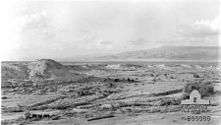 Shortly after the withdrawal from Amman a force of seven Ottoman aircraft bombed the Jordan Valley garrison and on 11 April 1918 a series of Ottoman attacks were made on Ghoraniyeh bridgehead, on El Mussallabeh hill and on the Auja position.[34][35][36] This attack is referred to by the British as the 'Turkish Attack on the Jordan Bridgeheads'.[37]