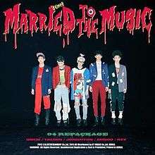On July 29, the repackaged album Married to the Music was announced to be released on August 3, with four additional songs: "Married to the Music," "Savior," "Hold You" and "Chocolate."[19][20][21] "Married to the Music" is described as funky disco and is the work of LDN Noise, Kenzie, Stereotypes and Deez. "Savior" by Kenzie is characterized by trendy and sensual lyrics. "Hold You" is a R&B song which was produced by Stereotypes and Deez. "Chocolate" is a medium-tempo R&B track and was written by group member Jonghyun and Yankie. It's described as a charming love story that is sweet like chocolate.[22] The choreography of the title song, "Married to the Music," is the work of Greg S. Hwang and Tony Testa.[23] The music video was released on the same day as the album.[21]