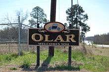 Olar is a town in Bamberg County, South Carolina, United States. The population was 257 at the 2010 census.[3]
