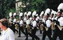 The marching element of the band is called the Olathe South Falcon Regiment (pictured right). During concert season, OSHS has two bands, Symphonic Band and Wind Ensemble. The Falcon Jazz Ensemble performed for the 2004 Kansas Music Educators Inservice Workshop. The Falcon Spirit Pep Band, a volunteer group, plays for basketball games, Spirit Riots (pep rallies) and other school events.