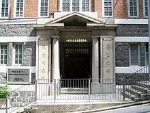 Tsan Yuk Hospital was originally located at the cross-section of Western Street and Third Street in Hong Kong's Sai Ying Pun district. The land on which the hospital was built was donated by the government and the $94,000 construction fee was donated by Mr. H. M. H Nemazee, Sai Ying Pun Kai Fong Committee (西營盤街坊會) of the Fishmongers' Guild (魚販商會) and Fruit and Vegetable Sellers' Guild (蔬果販商協會). The thirty beds were donated by Tung Wah Hospital, another government hospital located in neighbouring Sheung Wan.[2]