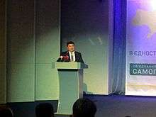 Oleksandr Ivanovych Danchenko (Ukrainian: Олександр Іванович Данченко, born November 14, 1974)[1] is a Ukrainian politician. He was elected to the Verkhovna Rada in the October 2014 Ukrainian parliamentary election, appearing 10th on the party list of Self Reliance.[1] Formerly the CEO of a telecom provider Data Group, currently he is the head of the Parliamentary Committee for Informatization and Communications.[2][3]