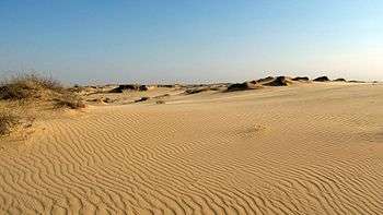 Oleshky Sands (Ukrainian: Олешківські піски) is the largest expanse of sand in Ukraine.[1] It is situated inland from the Ukrainian coast of the Black Sea and consists of sand dunes or kuchuhury (locally), which reach a height of five meters. Some sparse vegetation can be located across the sands.