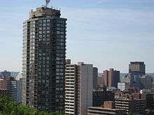 The Olympia Condos, a 33-storey (98 metres) condo building is the third tallest building in Hamilton, Ontario, Canada.[1] Situated just east of John Street South on Charlton Avenue East in the Corktown/ Stinson neighbourhood, 2 blocks east of the St. Joseph's hospital and nearby is the mountain access known as Arkledun Avenue/Jolley Cut. It is also a 5-minute walk to the downtown Hamilton GO Transit station from this location.