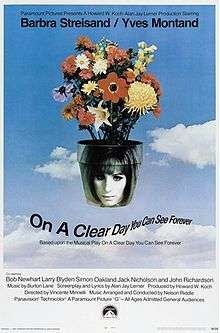 On a Clear Day You Can See Forever is a 1970 American musical comedy-drama fantasy film directed by Vincente Minnelli. The screenplay by Alan Jay Lerner is adapted from his book for the 1965 stage production of the same name. The songs feature lyrics by Lerner and music by Burton Lane. On a Clear Day You Can See Forever is considered one of the greatest musical films ever.[3][4]