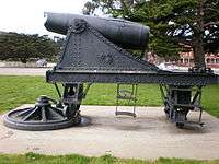 In September 1899, US forces attacked the battery at Subic Bay, where shells from the USS Charleston knocked the Ordóñez gun in the battery out of action.[10] William Randolph Hearst acquired this gun and presented it to the City of San Francisco where it was on display at Columbia Square Park until 1973, when it was moved to the Main Post of the Presidio of San Francisco.