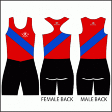 The colours of the Club are Navy Blue diagonal stripe with Cardinal Red background. In 1887, the Club’s uniform consisted of a Navy Blue jacket, trimmed with Cardinal Red, white flannel trousers, and a white guernsey, trimmed with the club colours; and a Navy Blue cap with Cardinal Red bars, or a straw hat with the club colours and Navy Blue and Cardinal Red stripped stockings.[7]