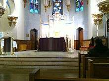 ![]() View of the sanctuary of the main church at the Parish of Our Lady of Good Counsel, Moorestown, NJ | |