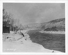 The Trinity River, one of the Klamath's largest tributaries, also flooded and wrought destruction along its length. The Trinity, however, did not break the 1955 flood's records because of the newly constructed Trinity Dam, which stored 372,200 acre feet (459,100,000 m3) of runoff from the storm.[7] Nonetheless, an impressive 231,000 cubic feet per second (6,540 m3/s) of water rushed down the river at Hoopa.[13]