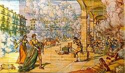 In the years that it was built Valladolid had very good azulejería workshops. In 1586 the workshop of Hernando de Loaisa opened and executed the decoration of the palace of Fabio Nelli at the same time that it did the school of Saint Gabriel (already missing).[nota 7] The favourite subjects in this decoration were the mythological. Also they appeared knightly scenes in the landscape of walled cities, following to the letter the tendencies so to the fashion launched by the Italian Renaissance of Florencia. Apart from the figurative scenes appears as ornamentation repeated the image of the pomegranate, loaded of symbolism, identified with the royalty, comparing its bittersweet flavor with the glories and troubles of the Government.[10]