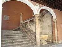 The Palacio de Fabio Nelli is, according to the critics and historians, the Renaissance building of the most important classical period of the city of Valladolid (Castile and León, Spain).[1] According to the architect Antonio Bustamante García, «it's considered this palace the best exponent and work of first row inside the Classicism of the civil architecture of Valladolid».[2] The art critics ensure that had much to do with the result of the work, the good relations and understanding between the sponsor, the banker Fabio Nelli, and the genius and mastery of the author Pedro of Mazuecos El Mozo.