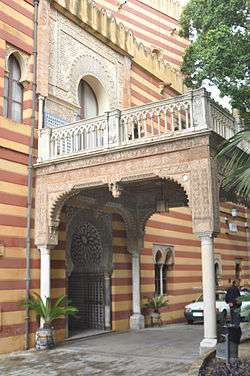The Palacio de Orleans-Borbón rises in the Spanish town of Sanlucar de Barrameda in the Andalusian province of Cádiz. It was built between 1853 and 1870 as a summer residence for Antoine, Duke of Montpensier and Infanta Luisa Fernanda, Duchess of Montpensier, at the time Duke of Montpensier and Infante of Spain, respectively.[1]