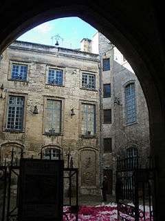 The Palais du Roure is a listed hôtel particulier in Avignon, France. It belonged to the Baroncelli family until it was purchased by author Jeanne de Flandreysy in 1918.[1] It has been listed as an official historical monument since November 19, 1941.[2]