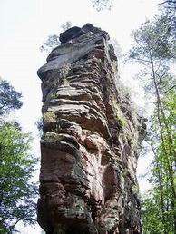 The Palatinate Forest Nature Park (German: Naturpark Pfälzerwald) lies in the south of Rhineland-Palatinate in Germany and borders on France. The nature park covers an area of 177,100 hectares (684 sq mi) and some 76% of its area is under the woods of the Palatinate Forest, the largest contiguous forest region in Germany. Together with a part of northern Alsace it forms the Palatinate Forest-North Vosges Biosphere Reserve and has an impressive Bunter sandstone landscape.