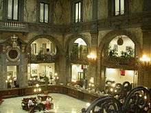 Over the decades following the end of the 19th century, the palace was acquired by the Banca Commerciale Italiana, and reconstruction was pursued under architect Luigi Platania. The facade acquired its present look, and a monumental marble staircase was installed, which is surrounded by 19th century frescoes by Giuseppe Cammarano and Gennaro Maldarelli. The frescoes include Cammarano's Apotheosis of Sappho (1832). The courtyard was made into a stunning covered public hall vaulted by a glass ceiling with a floral motifs. The palace became a public museum and gallery. In 2001 Banca Intesa, became the Intesa Sanpaolo.