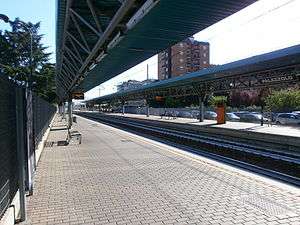 Palazzolo Milanese railway station is a railway station in Italy. It serves Palazzolo Milanese, a neighbourhood in the municipality of Paderno Dugnano. It was the first station of this line modernized with lifts, new and taller quays, shelters and underpasses. The station is located in Via Alessandro Coti Zelati.