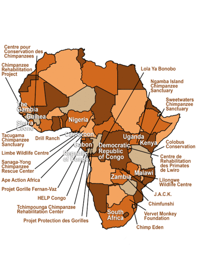 - 1 2 3 4 "Pan African Sanctuary Alliance". Pan African Sanctuary Alliance.