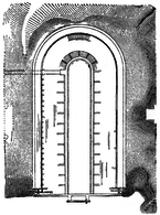 The Panathenaic stadium at Athens, 850 feet long, was constructed of poros stone by the legislator Lycurgus [...]; it was only long afterwards, at about A.D. 143, the stadium was reconstructed in Pentelic marble by Herodes Atticus.