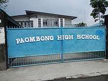 Paombong High School is a private secondary school established in Paombong, Bulacan. It is a non-sectarian school for boys and girls that was founded in the year 1947.