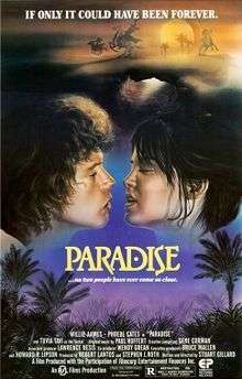 Paradise is a 1982 Canadian romance adventure film starring Phoebe Cates and Willie Aames, written and directed by Stuart Gillard. The original music score was composed by Paul Hoffert with the theme song written and produced by Joel Diamond and L. Russell Brown and sung by Phoebe Cates.[2]
