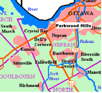 Map of Nepean, Ontario, showing Parkwood Hills. | ||