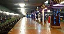 The Paulsternstraße is also a street in Berlin, Spandau. The walls are covered with pictures of flowers, gras and sunpatterns. The ceiling is also covered with stars. The next station is Rohrdamm.[1]
