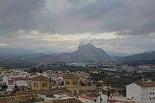 Peña de los Enamorados seen from the railway line between Seville and Granada | |