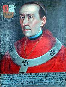 Pedro Cortés y Larraz (Belchite, Zaragoza, 6 July 1712 - Zaragoza, 7 July 1787) was Archbishop of Guatemala between 1767 and 1779 and bishop of Tortosa between 1780 and 1786.