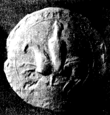 The earliest surviving aristocratic wax seal from Spain is found hanging from a document of Pedro's dated 22 January 1179.[27] Since this practice was already current in France, it is probable that it entered Spain through the Laras' connexions with Narbonne and was certainly influenced by Occitan and Catalan designs.[28] It may have been made from a matrix cast as early as 1164, when Pedro succeeded his father in Molina.[27] This is the only surviving example of Pedro's seal and, although heavily worn, its image is describable: