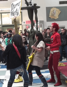 Peelander-Yellow once broke a foot while jumping off the 2nd floor of a venue they were playing in New Mexico.[4]