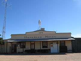 On 26 July 1877 Michael Dowdican made a conditional purchase of land at the Balranald-Ivanhoe-Oxley road junction and built the Homebush Hotel, which commenced operating in 1878.[1]